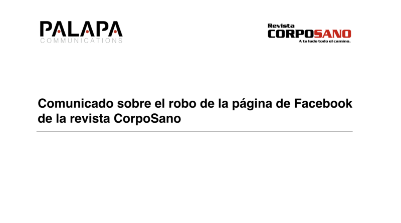Comunicado sobre el robo de la página de Facebook de la revista CorpoSano