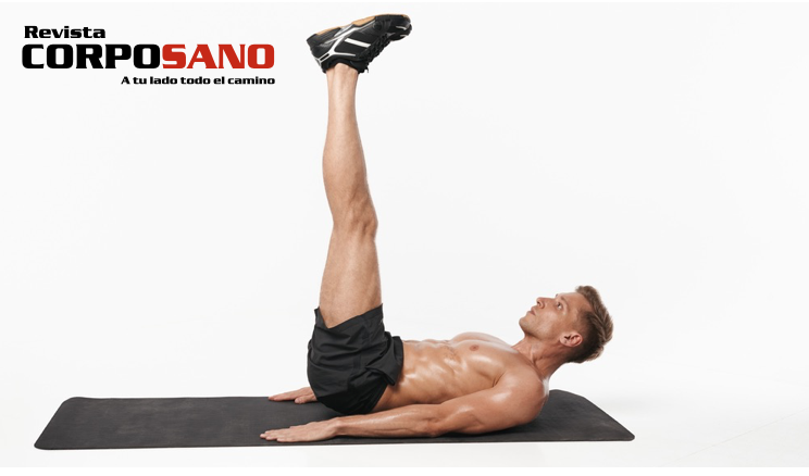 Ejercicio 3: Elevación de piernas. En la misma posición que el ejercicio anterior, eleva tus piernas hasta que tu cuerpo forme en ángulo de 90 grados. En un movimiento controlado, regresa las piernas al suelo. Puedes elevar ligeramente tu cabeza del piso o mantenerla en el suelo. Lo importante es que el esfuerzo provenga del abdomen y no del cuello o espalda.