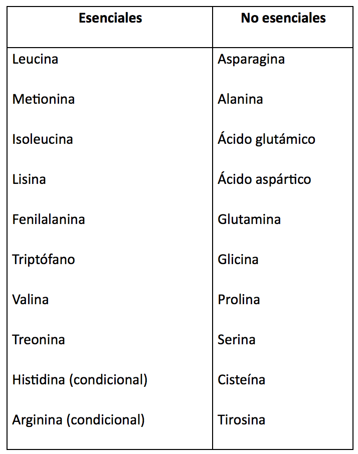 Existen 20 tipos de aminoácidos que se dividen en dos grupos: