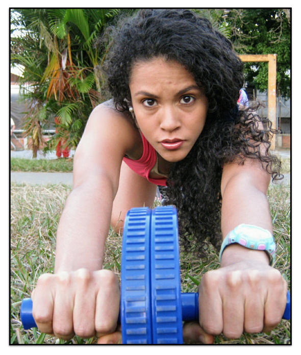 Mi primer entrenamiento del día lo hago en casa, me he construido mi gym en mi terraza, ese es mi campo de batalla, tengo pesas, mancuernas, una llanta de camión etc, y en la noche asisto a clases de rumba aeróbica, combatfit y hago cardio al aire libre.