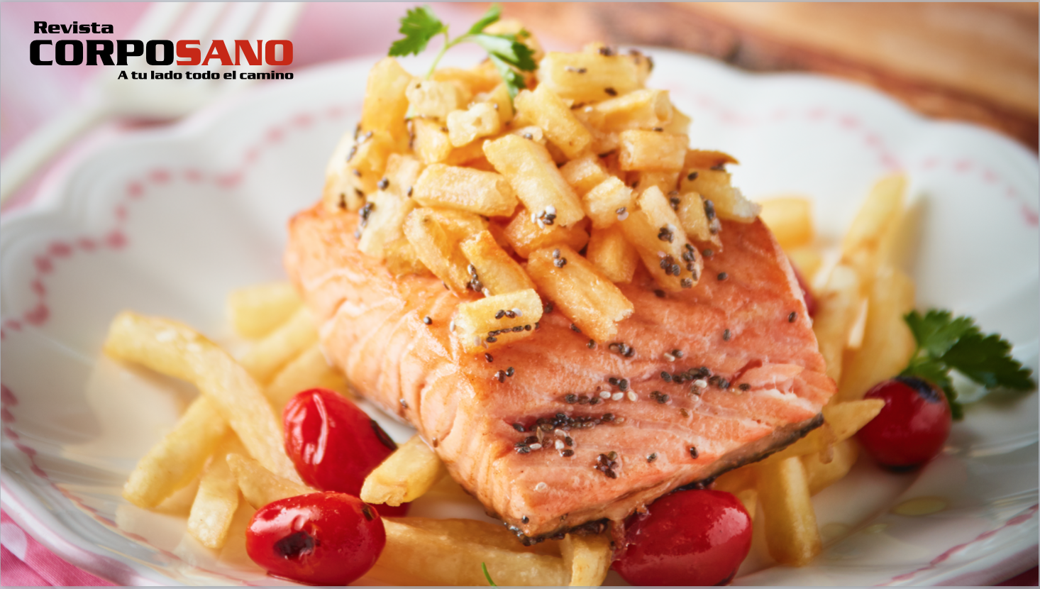 Salmón con chía y papas